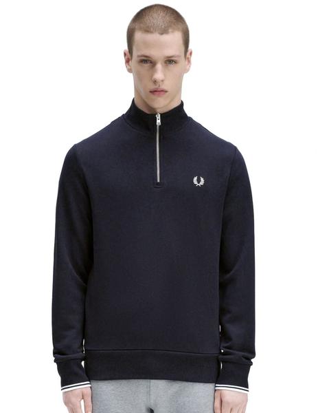 Sudadera con media cremallera y rayas en la espalda, confeccionada en una mezcla de algodón de primera calidad con los detalles de Fred Perry.