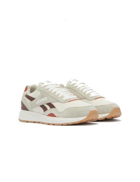 Las zapatillas GL1100 rinden homenaje a los modelos de running vintage y reflejan la estética retro de Reebok. La silueta de caña baja cuenta con una parte superior de tejido y superposiciones de ante, entresuela FuelFoam y suela de goma. Los detalles de color gris claro y marrón contrastan con el fondo blanco.