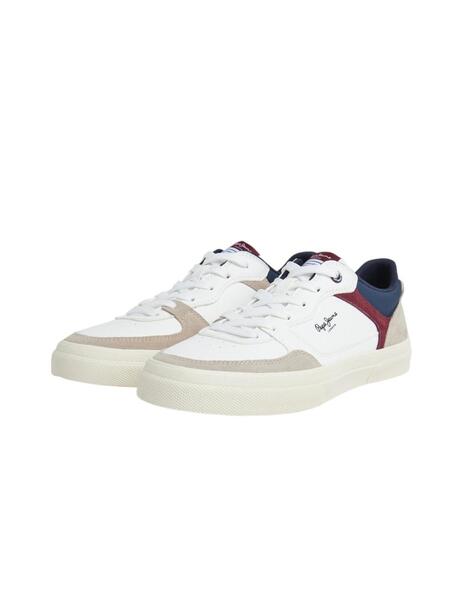 Zapatilla Pepe Jeans blanca con detalles en granate y marino. Con estilo retro aporta estilo y es perfecta para dar un toque de color a todos tus días.